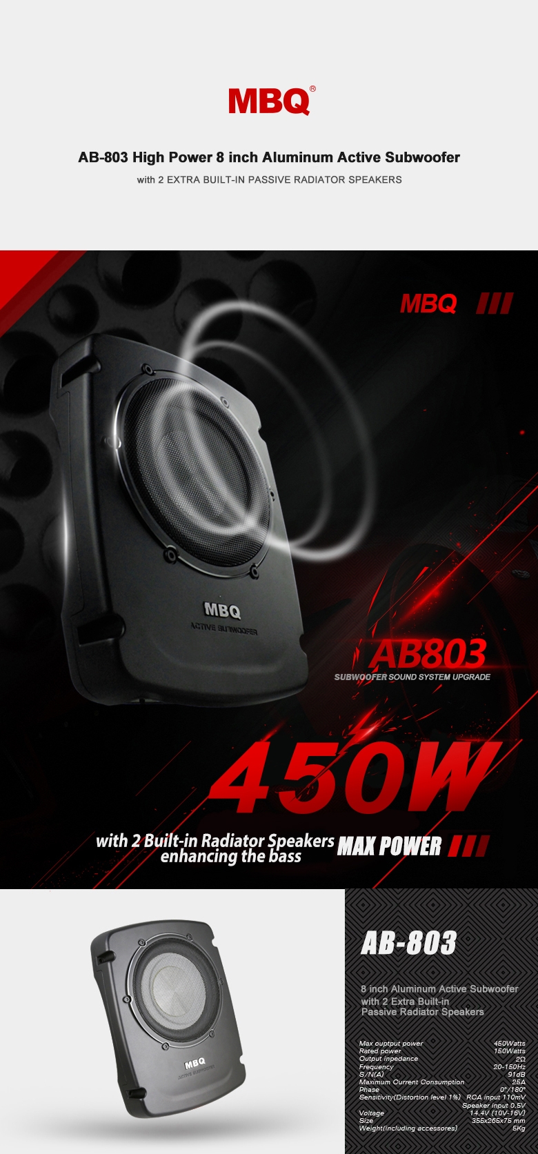 MBQ 汽車音響8寸超薄有源低音炮AB803