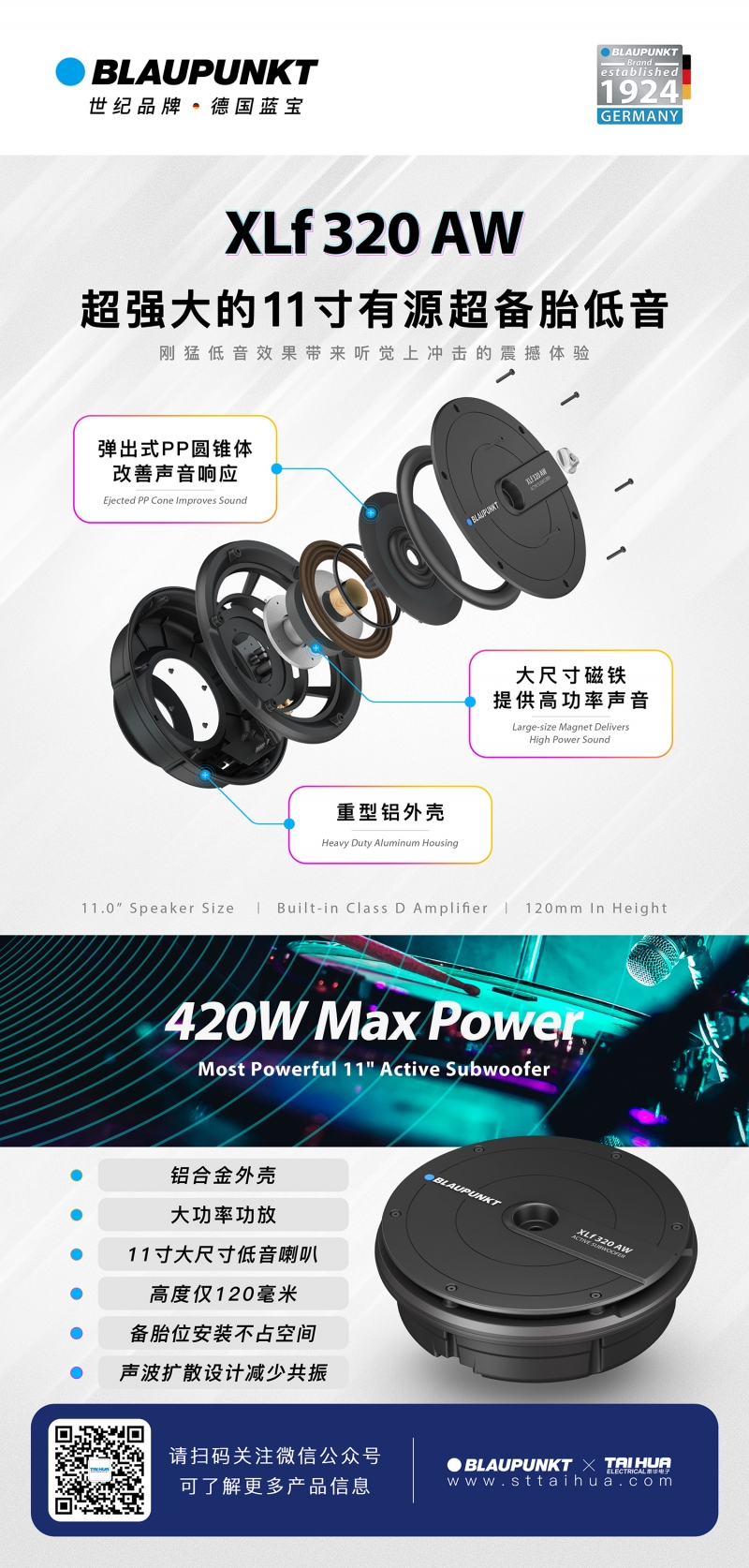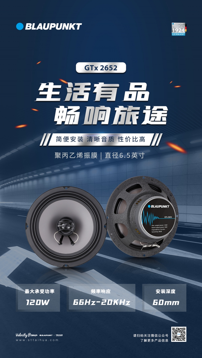 德國藍寶GTx 1662 C25 兩分頻喇叭,採用鋁閤金盆架(比普通鐵架減少對磁場的損耗,比普通鐵架更硬,減少喇叭本體振動,聲音更榦淨),玻璃纖維振膜帶來更清晰的中低音。航天級磁鐵提供強力磁場,讓低頻更榦淨有力。高音採用25芯進口真蠶絲膜片,釹磁永磁鐵,讓中頻銜接更平順,高頻延伸性更好。
