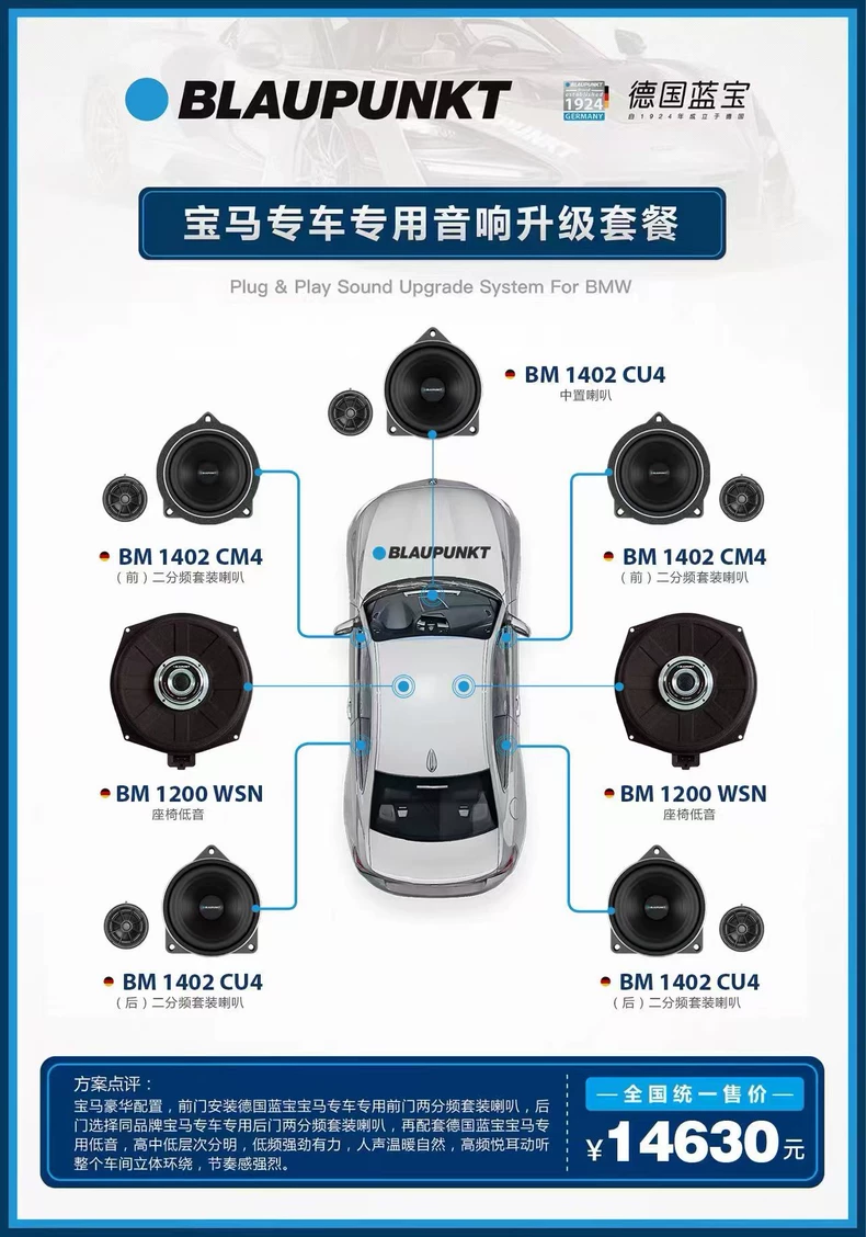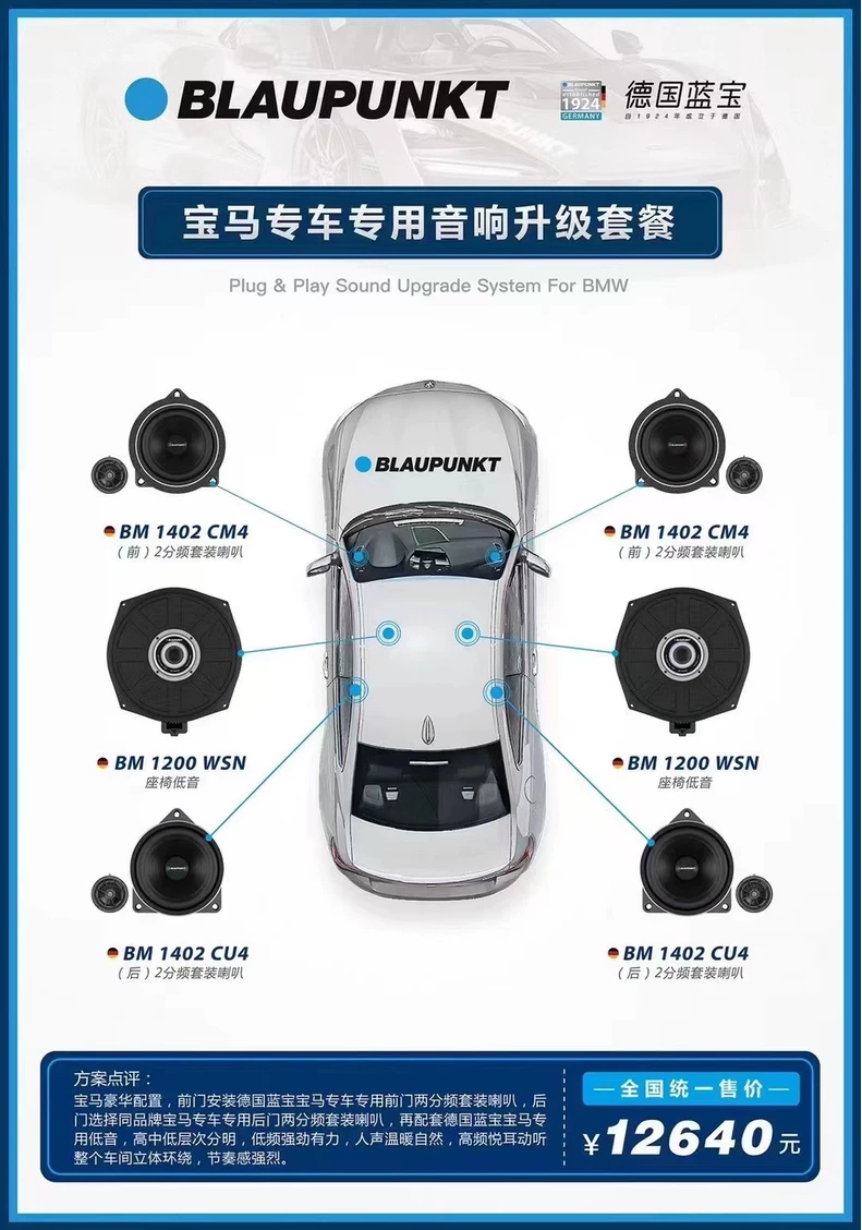 德國藍寶寶馬專車專用喇叭,中音喇叭可無損安裝於原位上,全鋁材質(zhì)打造,玻纖音盆,加之底部的鋁製音圈,使得聲音會更加自然通透,音色飽滿,失真小。