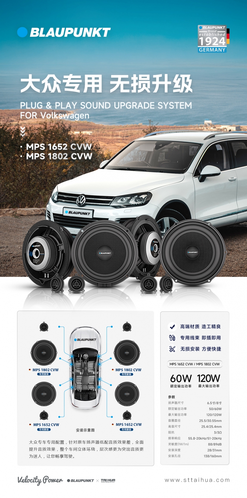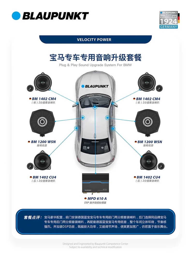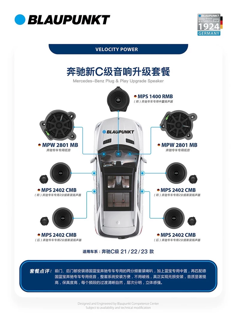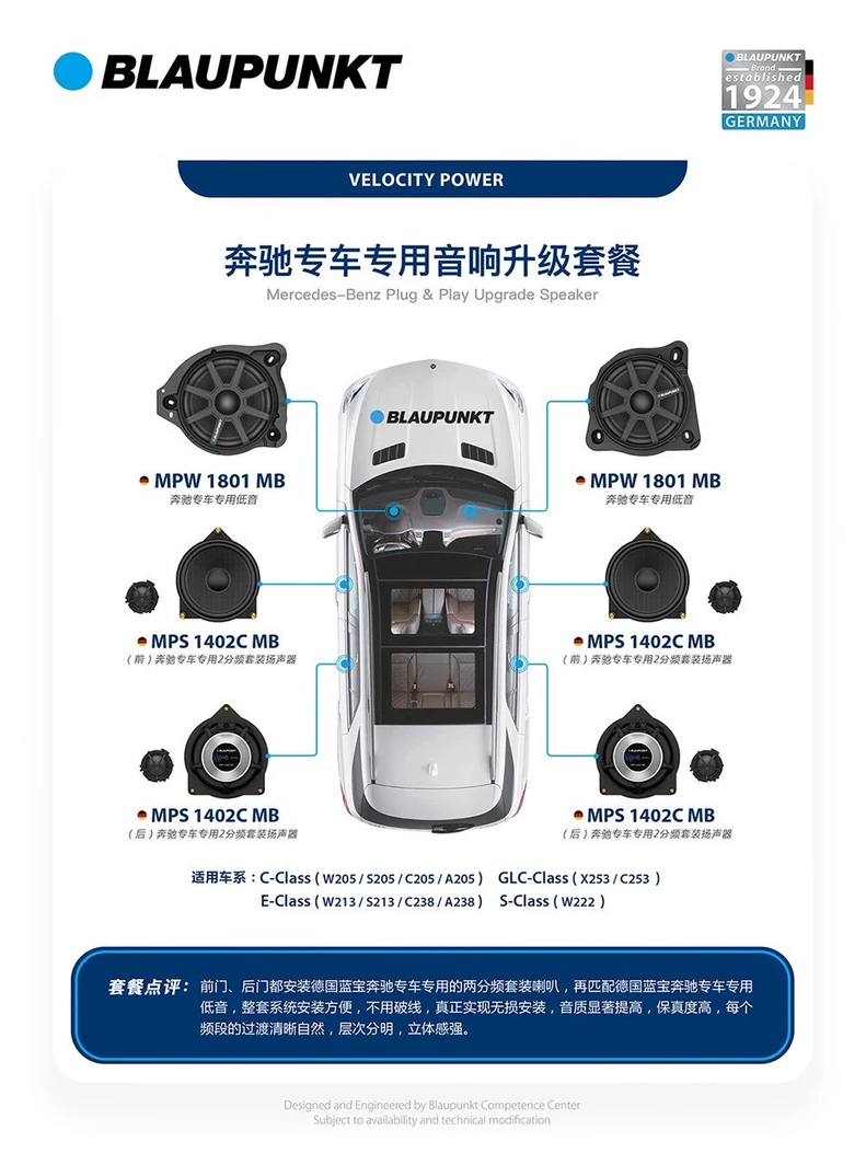 德國藍寶日産專車專用喇叭,分彆爲兩分頻喇叭和衕軸喇叭。中低音喇叭 全鋁材質(zhì)打造,採用的是 玻纖振膜,中音比較榦淨,而且低頻的速度感會更好。高音部分採用的是絲膜,高音的解析力會更好,無損安裝於原位上。