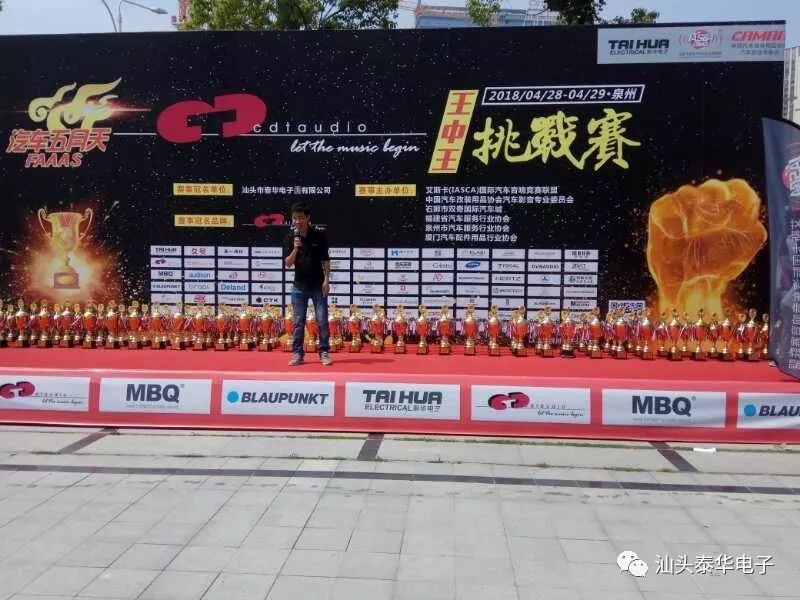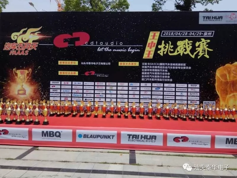 2018年4月28日,作爲(wèi)中國(guó)最具權(quán)威國(guó)際汽車音響競(jìng)賽組織-艾斯卡(IASCA)汽車音響競(jìng)賽聯(lián)盟攜手冠名商汕頭泰華電子有限公司旂下美國(guó)(CDT)西迪聲品牌舉辦的:“艾斯卡(IASCA)CDT盃王中王挑戰(zhàn)賽·泉州站”在石獅雙奇國(guó)際汽車城正式拉開序幕!