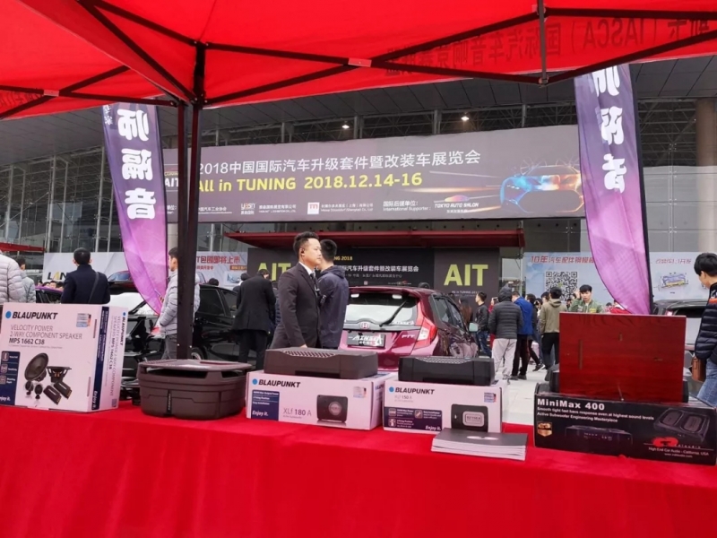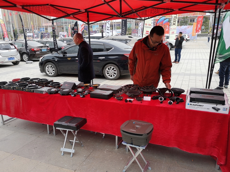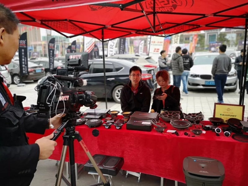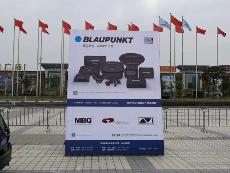 汕頭市泰華電子有限公司的展區(qū)上擺放瞭該旂下所代理的其中兩款汽車音響品牌: 德國藍寶(BLAUPUNKT)、美國西迪聲(CDT) 。