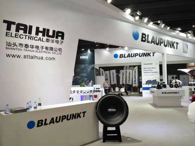 吸引眼球的不止是産品、樣品車與展區(qū)佈局,還有汕頭市泰華電子有限公司爲這次展會自製的32寸大喇叭,吸引著買傢們的拍照與閤影。